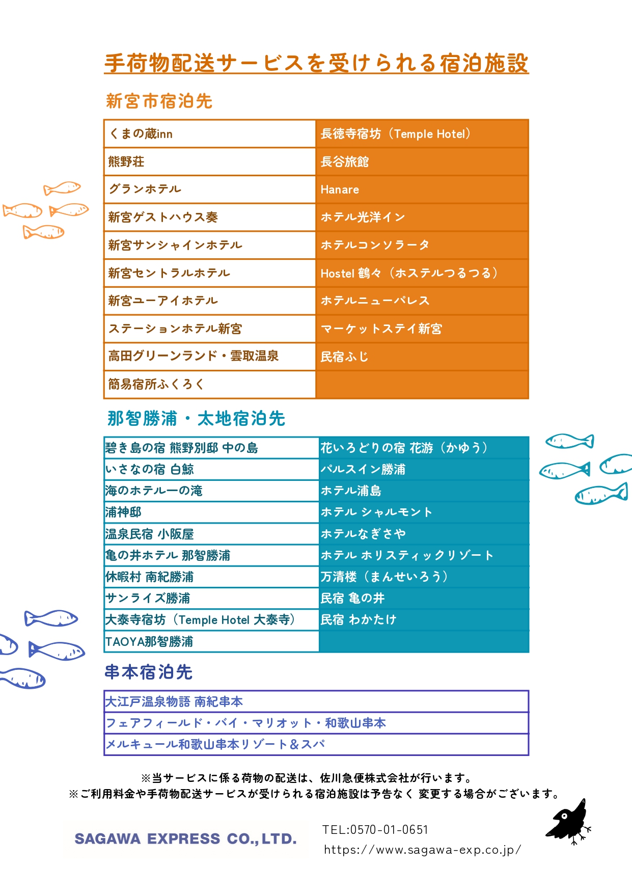 ※お荷物は同日17:00頃までに宿泊施設へ配送いたします。